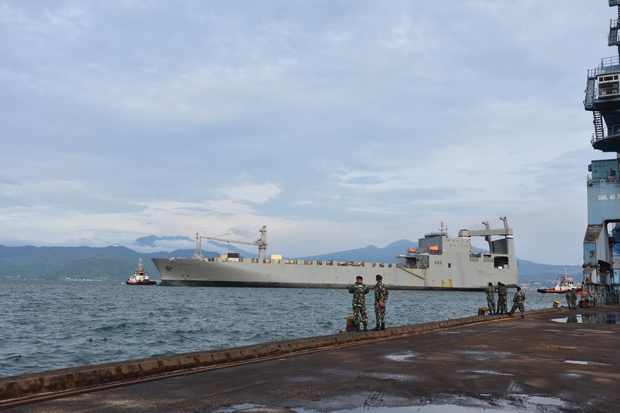 Lampung – Sejumlah Alat Utama Sistem Persenjataan (Alutsista) milik negara peserta Latihan Gabungan Bersama (Latgabma) Super Garuda Shield 2025 mulai tiba di Pelabuhan Panjang, Lampung, Kamis. (14/8/2025).