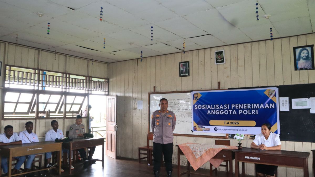 Papua – Kepala Bagian SDM Polres Asmat, AKP Djhon Phillips Rahaten, S.Sos., bersama Anggota laksanakan Sosialisasi Penerimaan Anggota Polri T.A 2024-2025, yang bertempat Di SMA Yppgi Rosler, (04/11/2024).