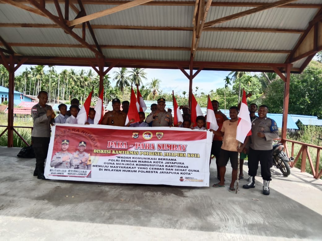 Papua – Kanit Binmas Polsek Muara Tami, Ipda Yanto Rumbruren telah mengadakan kegiatan pembagian Bendera Merah Putih kepada masyarakat di wilayah perbatasan Distrik muara tami, kota jayapura, dalam rangka Hari Ulang Tahun Republik Indonesia (HUT RI) ke-79, Senin (05/08).