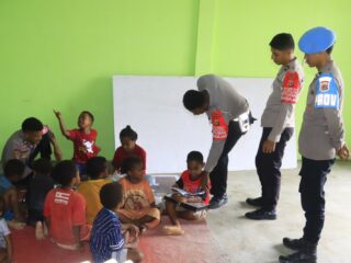 “ Kami sangat senang dapat di terima dengan antusisas dari mama-mama maupun anak anak di lokasi belajar, selain membawa materi untuk di berikan kami juga datang dengan hadiah agar anak-anak dan ibu-ibu bisa belajar dengan riang gembira” Ujar AKP Lalang.