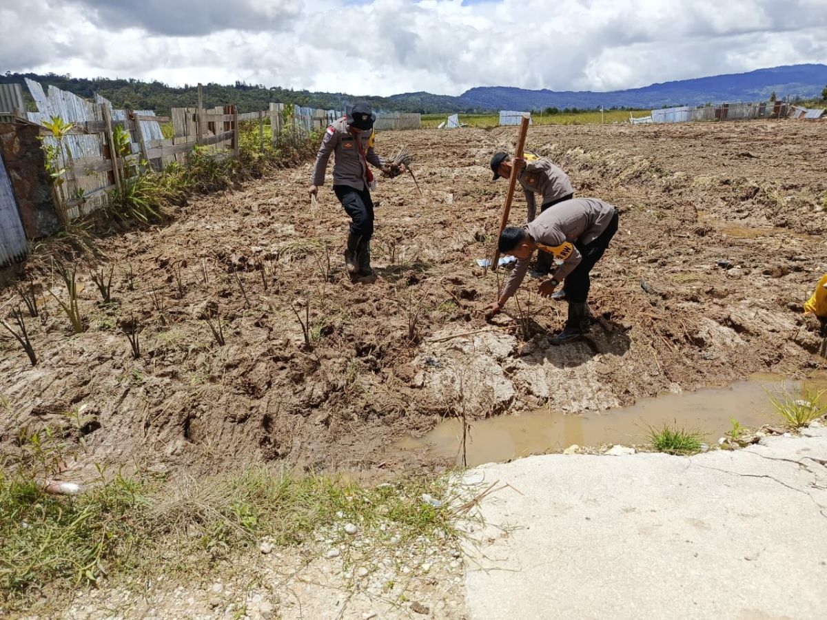 Bhabinkamtibmas Polres Deiyai Polda Papua Tengah Laksanakan Penanaman Bibit Ubi di Lahan Pertanian