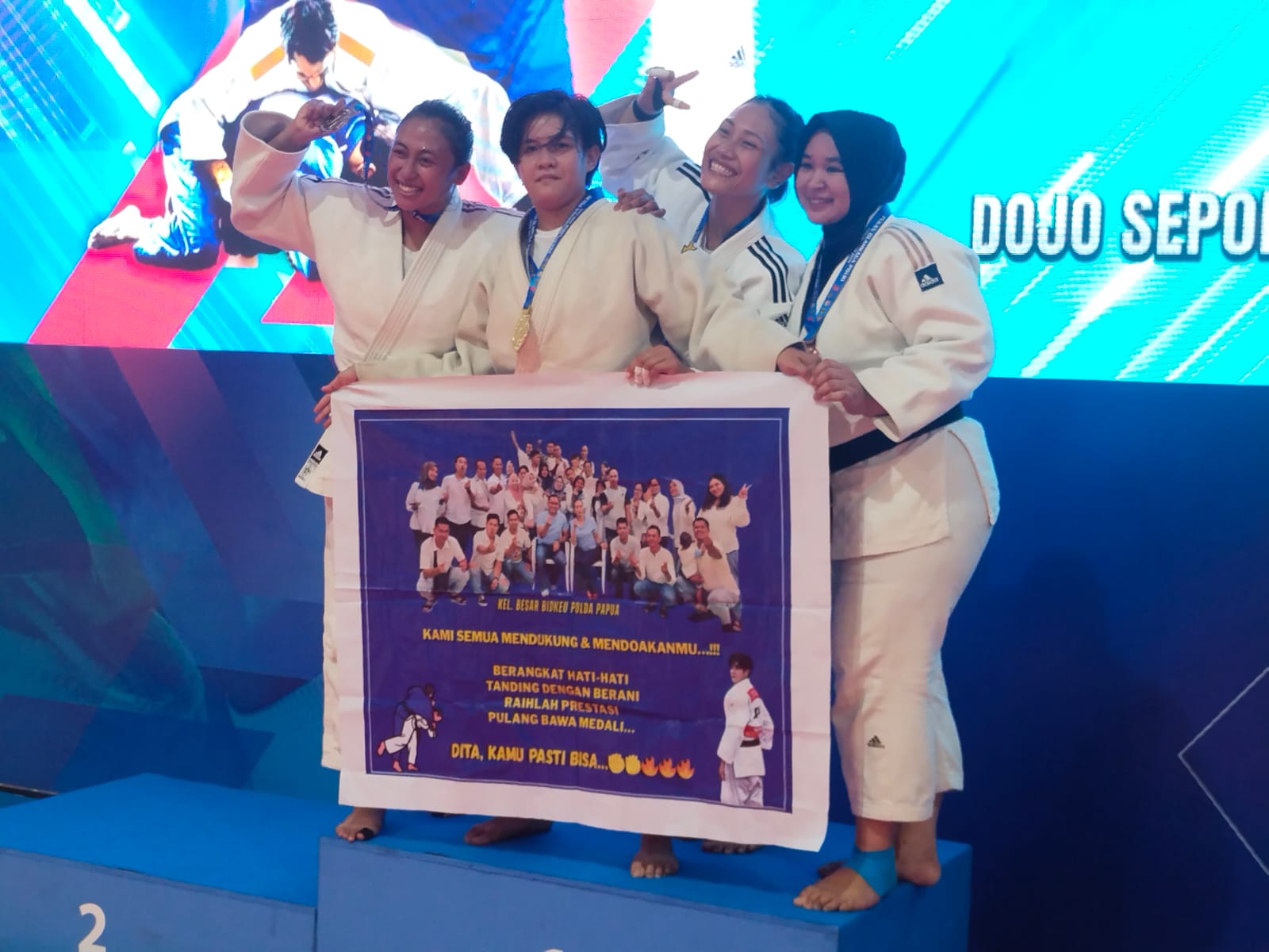 Papua – Kontingen Judo Polda Papua berhasil menorehkan prestasi gemilang pada Kejuaraan Judo Kapolri Cup Tahun Anggaran 2025 yang diselenggarakan di Dojo Pusdik Sepolwan, Ciputat, Jakarta Selatan. Dalam pertandingan hari pertama salah satu atlet Polda Papua, Bripda Dita Aulia Permata Putri, tampil gemilang dan berhasil meraih medali emas setelah keluar sebagai juara pertama pada kelas +70 kg putri, Jumat (25/07/25).