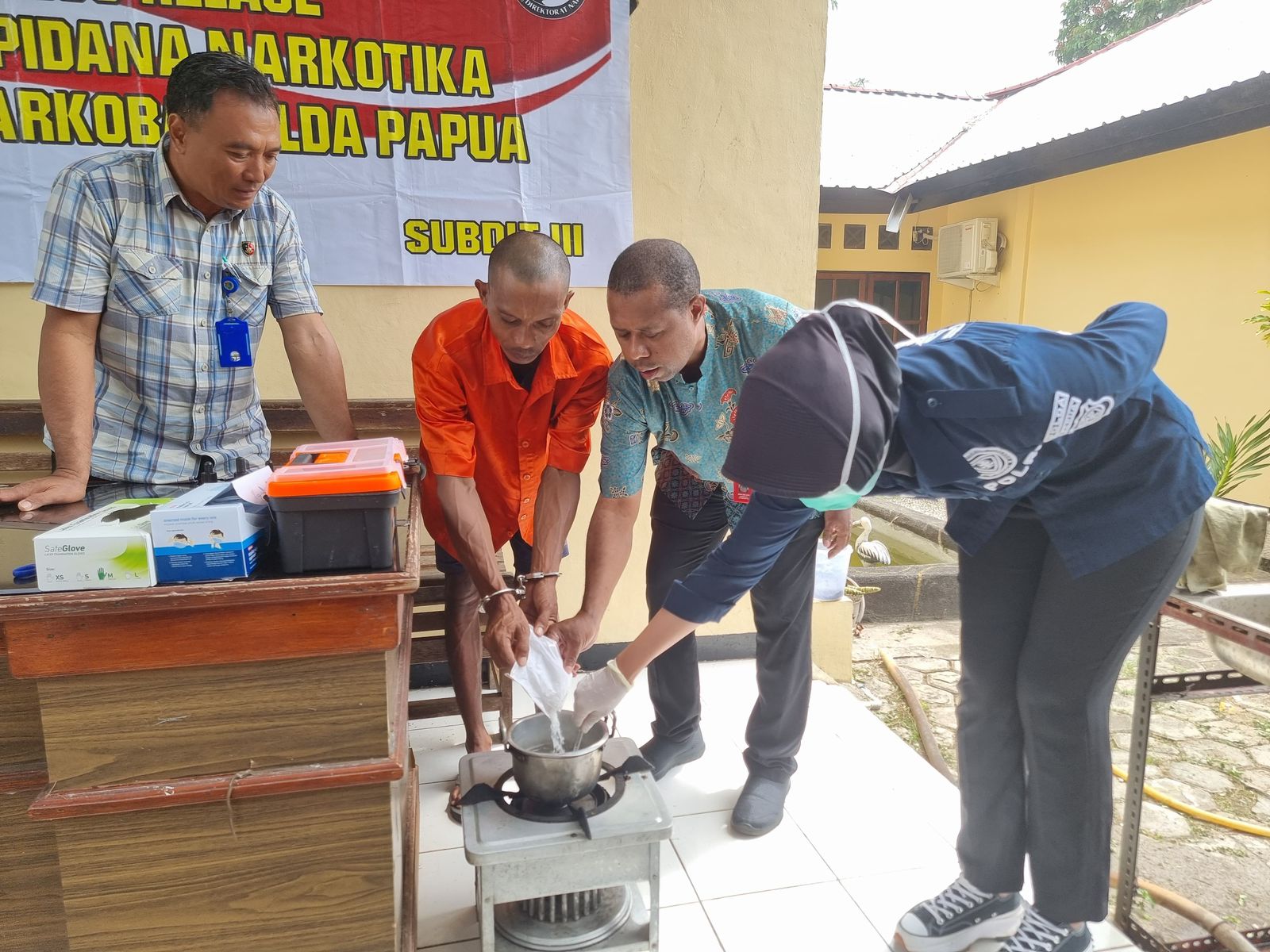 “Jadi pemusnahannya itu setelah dilakukan uji barang bukti dulu oleh pihak labfor Polda Papua, yakni Iptu Herlia selaku Kaur Narko Subbid Narkoba Bid Labfor dan Briptu Febri selaku Anggota Bid Labfor dan hasil pengujian nya positif,” ujarnya.