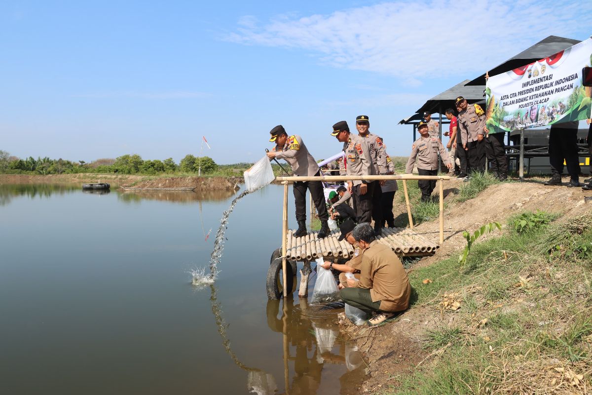 Cilacap – Dalam rangka mendukung program Asta Cita Presiden, Polresta Cilacap menggelar aksi penebaran 7.500 ekor benih ikan di tiga kecamatan di wilayah Kabupaten Cilacap, yakni Kecamatan Jeruklegi, Kecamatan Kedungreja, dan Kecamatan Majenang. Tak hanya tebar benih ikan, Polresta Cilacap juga melaksanakan penanaman 1000 pohon mangrove dan 1.500 pohon pepaya.