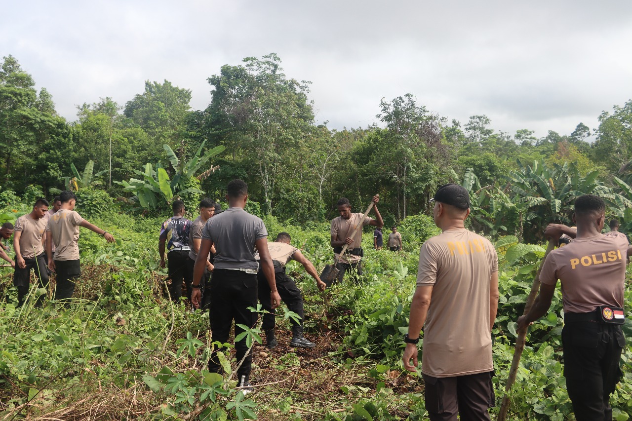 Papua – Dalam rangka mendukung program Swasembada Pangan pemerintah, dan demi mewujudkan masyarakat yang sejahtera, Polres Mappi laksanakan kegiatan pembukaan lahan pertanian yang berlokasi di halaman belakang kantor Polsek Obaa, Selasa (17/06/2025).