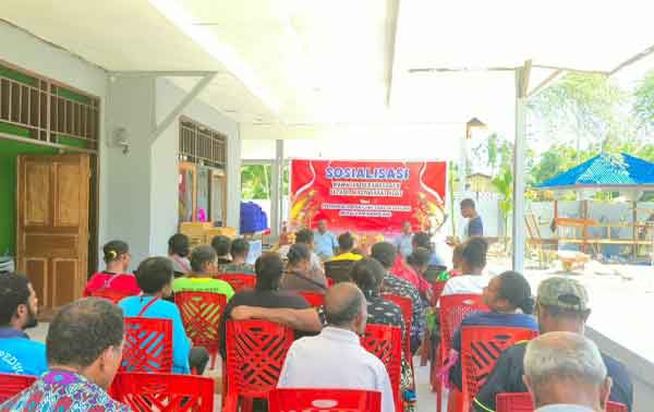 Sosialisasi ini dihadiri oleh masyarakat kampung dan dipimpin oleh para tokoh adat kampung digelar di kediaman Keondoafian Kampung Skouw Sae, Distrik Muara Tami, Kota Jayapura, Jumat (7/11/2025).