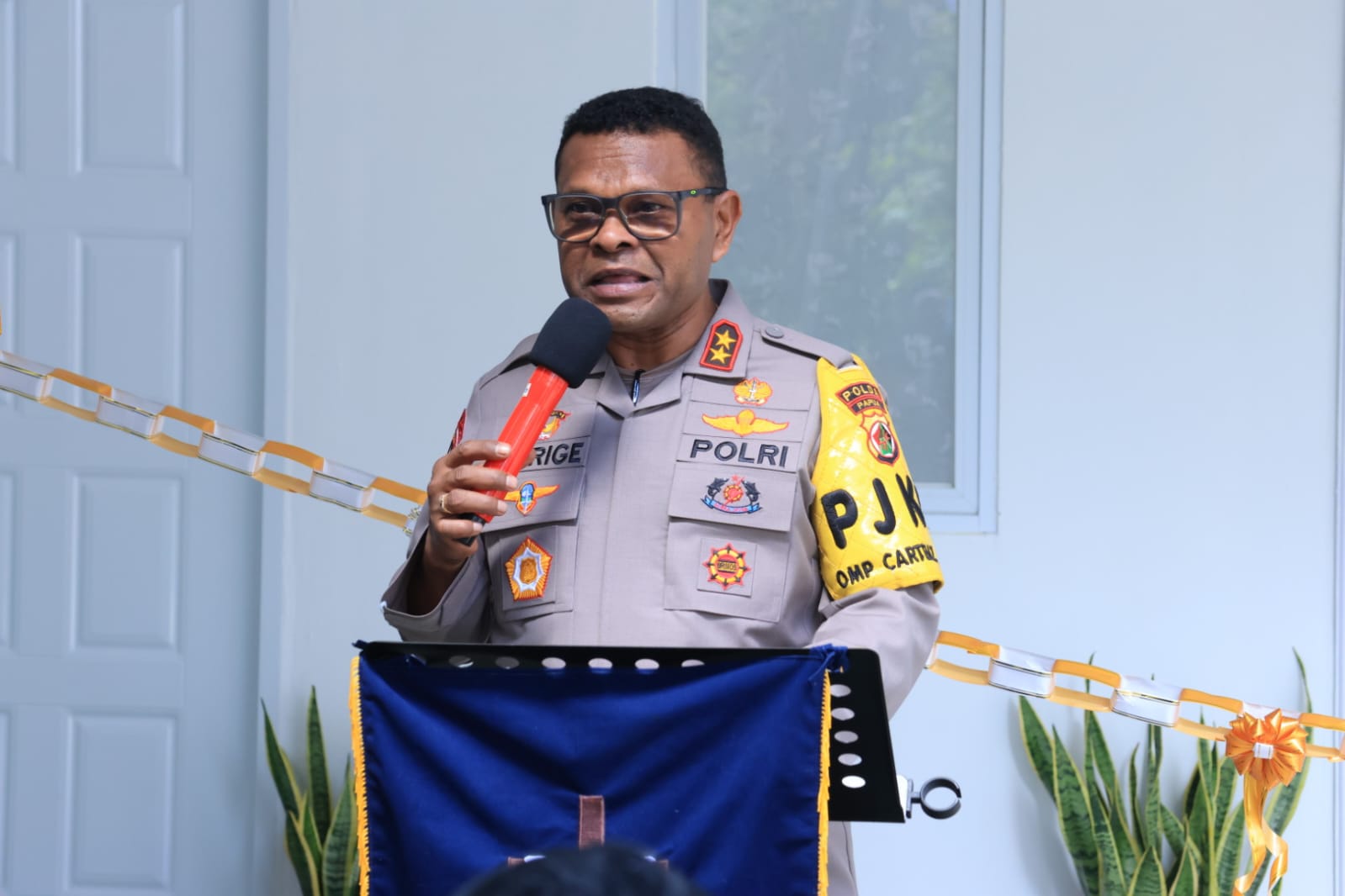 Papua – Kepala Kepolisian Daerah Papua, Irjen Pol. Irjen Pol. Patrige R. Renwarin, S.H., M.Si., menghadiri peresmian Gedung Charis Mission House (CMH) Gereja Isa Al–Masih Pegangsaan yang berlokasi di Distrik Depapre, Kabupaten Jayapura, Provinsi Papua, Rabu (09/07/2025).