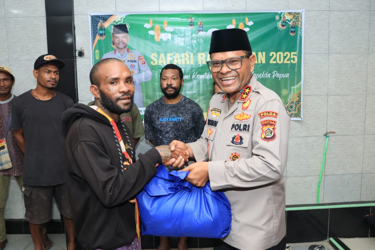 Papua – Kapolda Papua, Irjen Pol. Patrige R. Renwarin, S.H., M.Si, melaksanakan Safari Ramadhan 1446 H bersama Anak Jalanan dan Umat Muslim Masjid Al Muhajirin Pasar Ampera Kota Jayapura, Jumat (07/03/2025).