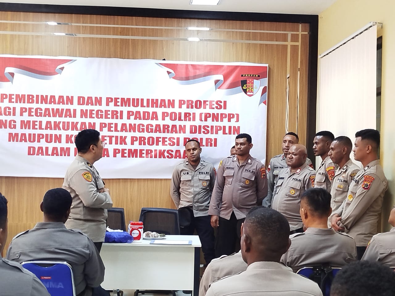 Papua – Polda Papua melalui Bidang Profesi dan Pengamanan (Propam) melanjutkan pelaksanaan Pembinaan dan Pemulihan Profesi Polri bagi Pegawai Negeri Pada Polri (PNPP) yang melakukan pelanggaran disiplin maupun Kode Etik Profesi Polri. Kegiatan ini memasuki hari kedua dan berlangsung di Ruang Rapat Propam Polda Papua, Koya Koso, Selasa (12/08/25).