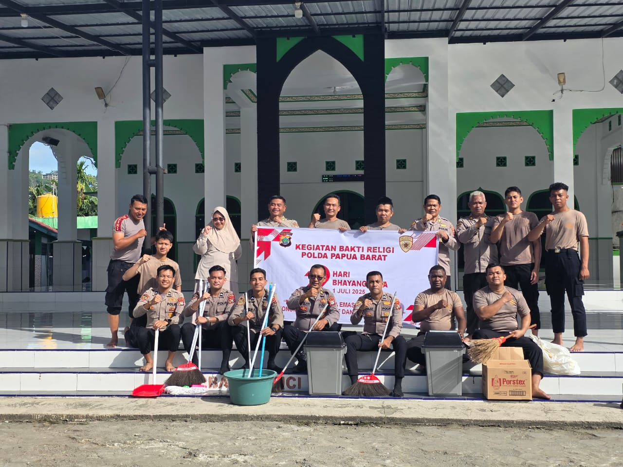 Karo SDM Polda Papua Barat Kombes Pol Hengky Pramudya, S.I.K., M.Si., yang diwakili oleh PS Kabag Psikologi Kompol Irfan A. Mursy, S.Psi., PS Kasubbag Mujab AKP Salahudin Arsyad, S.Sos., PS Kasubbag Renmin AKP Ahmad Shofiyanto, S.Sos., PS Kasubbag Pangkat AKP Darwin Buka, serta para Pama dan personel Biro SDM Polda Papua Barat melaksanakan kegiatan pembersihan di lingkungan tempat ibadah Masjid Al-Hikmah Kampung Jawa Wosi. Selain itu, Biro SDM Polda PB juga menyerahkan peralatan kebersihan yang diterima langsung oleh Imam Masjid Al-Hikmah untuk digunakan dalam menjaga kebersihan lingkungan masjid.