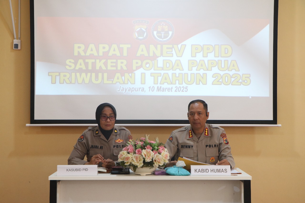 Papua – Kabid Humas Polda Papua Kombes Pol. Ignatius Benny Ady Prabowo, S.H, S.I.K., M.Kom., telah usai melaksanakan sekaligus memimpin jalannya Rapat Anev PPID Satker Polda Papua Triwulan I tahun 2025, Senin (10/03/25).