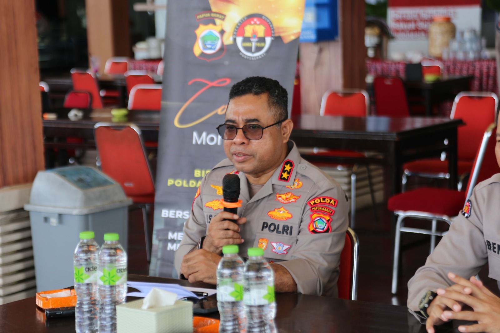Manokwari – Kepolisian Daerah Papua Barat terus mempererat hubungan kemitraan dengan insan pers sebagai mitra strategis dalam menjaga keamanan dan ketertiban masyarakat, Hal ini ditunjukkan melalui kegiatan coffee morning yang digelar Selasa, (12/8/25)