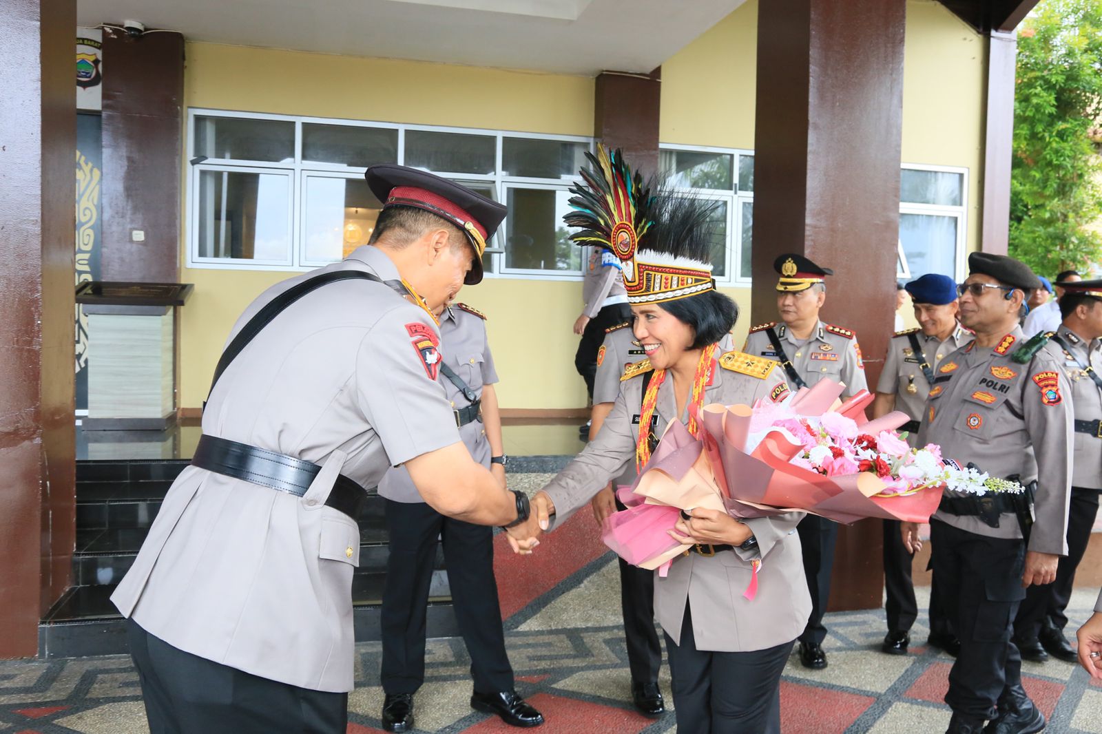 Kegiatan penyambutan kemudian dilanjutkan dengan sapaan dan jabat tangan Wakapolda Papua Barat yang baru kepada seluruh anggota Polda Papua Barat.