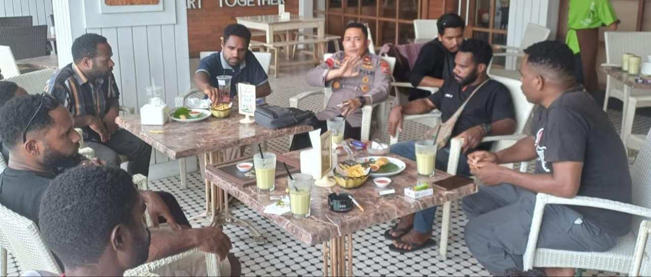 Dengan didampingi Kanit Intelkam Ipda Mardi, Kapolsek Abepura lakukan diskusi santai bersama Mantan Ketua BEM-Uncen Yops Itlay, S.H, Salmon Wantik, Ketua Asrama Kinaonak Pasar Youtefa Yumiron Telenggen, Pengurus Asrama Nayak 1 Roni Asso bersama beberapa rekan mereka dari perwakilan masing-masing asrama mahasiswa Kabupaten Jayawijaya yang ada di wilayah Abepura di lokasi tersebut.