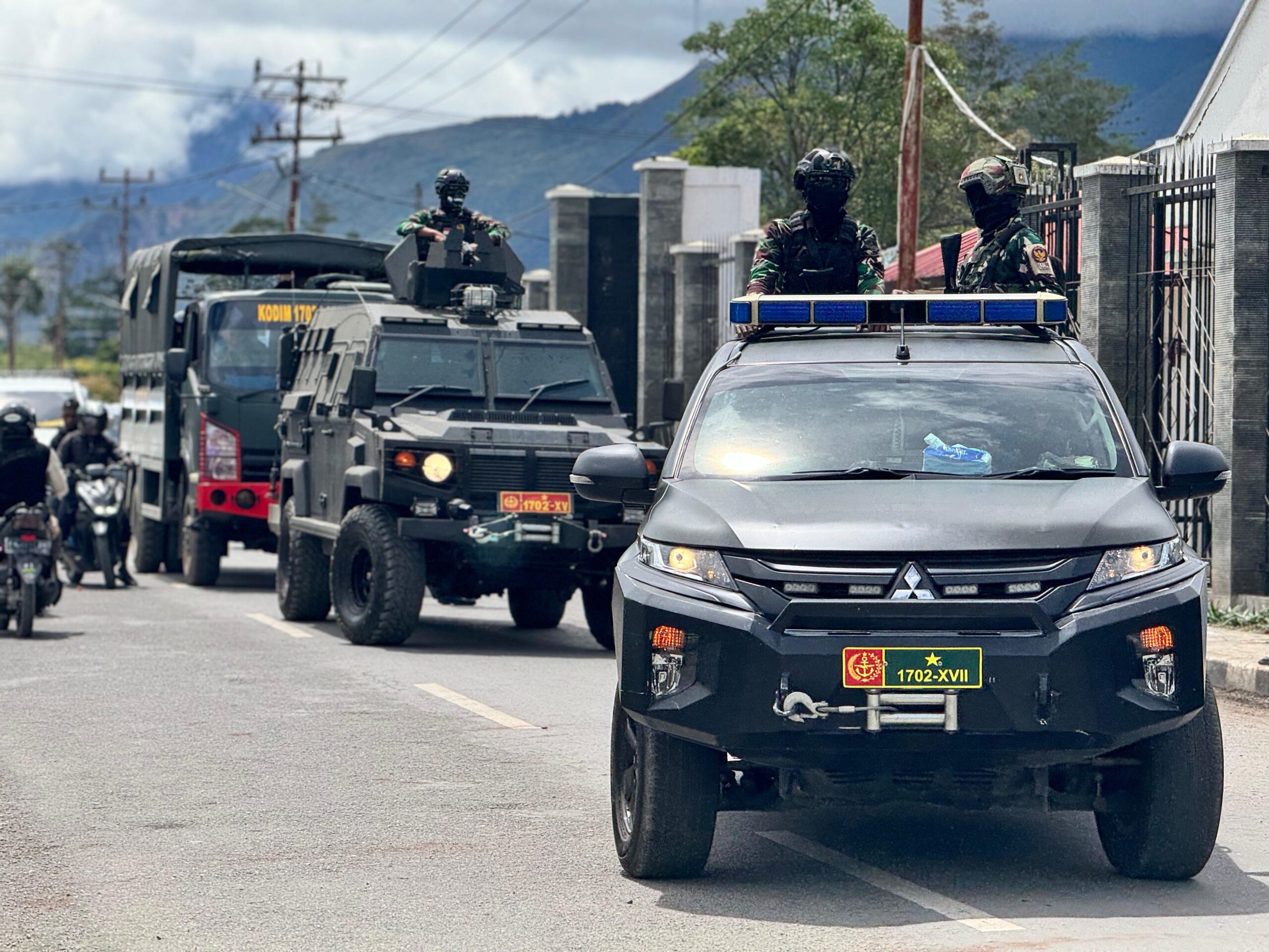 Wamena – Dipimpin Batiops Kodim 1702/Jayawijaya Peltu Iswahyudi, Kodim 1702/Jayawijaya melaksanakan patroli Show of Force di seputaran Kota Wamena, Kabupaten Jayawijaya, Provinsi Papua Pegunungan, Kamis (28/11/2024).