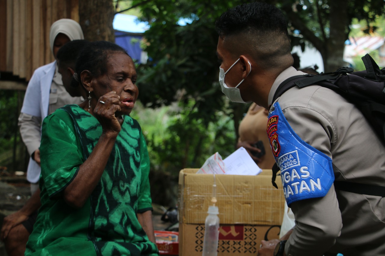 Papua – Jarak yang jauh dan medan yang tidak mudah selama ini membuat warga Kampung Toladan, Distrik Sentani, Kabupaten Jayapura, sulit menjangkau layanan kesehatan. Namun kondisi itu kini mulai terjawab. Polres Jayapura melalui Satgas Keladi Sagu datang langsung membawa pelayanan kesehatan ke rumah-rumah warga, Rabu (26/11).