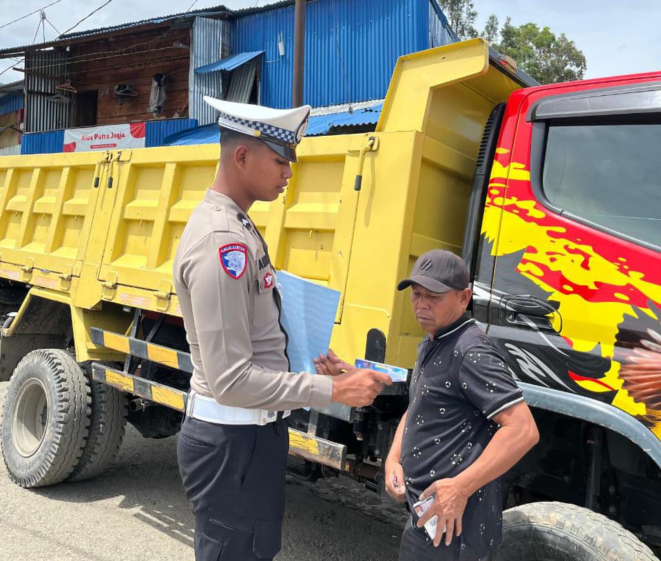 Kegiatan dipimpin oleh Kasat Lantas Polres Tolikara Ipda Febri Yudha Asmara, S.H., bersama empat personel Sat Lantas lainnya. Mereka menyampaikan pentingnya keselamatan berkendara, mulai dari penggunaan helm standar, ketaatan terhadap rambu lalu lintas, hingga kelengkapan surat-surat kendaraan.