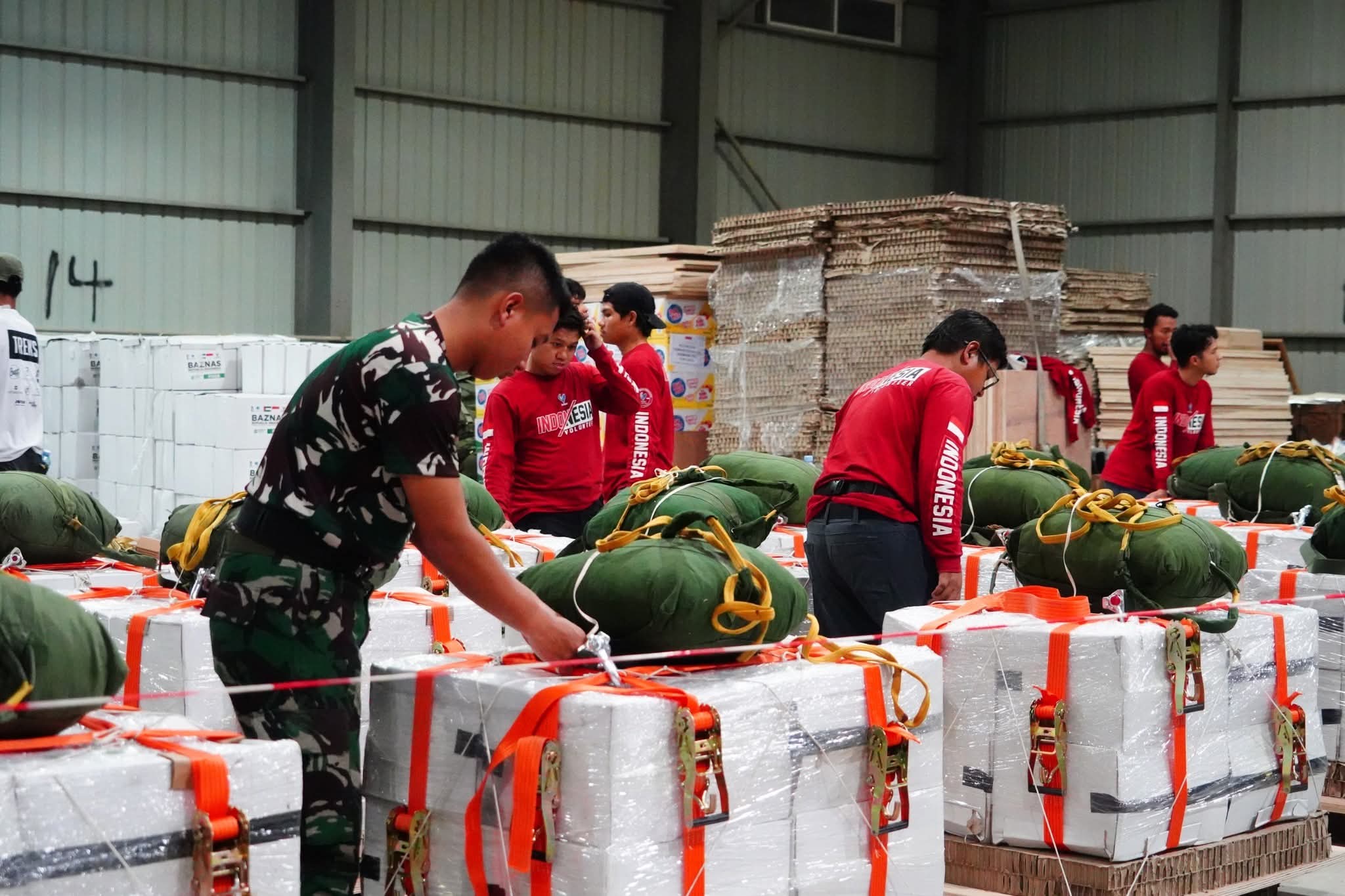 Satuan tugas dengan nama Garuda Merah Putih II yang diperkuat 88 personel terdiri dari kru penerbang dan pendukung teknis, menggunakan 3 pesawat Hercules C-130J TNI AU dari Skadron Udara 31. Operasi bantuan kemanusiaan ini telah mengirimkan logistik sejak 17 Agustus hingga 9 September 2025 melalui airdrop dari pangkalan aju di Yordania dan Mesir dengan total bantuan sebesar 91,4 ton atau sekitar 520 bundel.