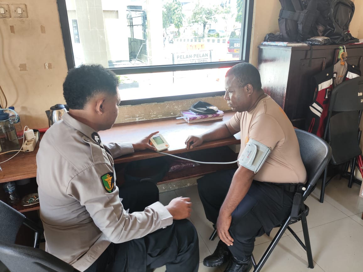 Dalam kegiatan pemeriksaan kesehatan ini, personel diperiksa secara menyeluruh, mulai dari tekanan darah, denyut nadi, hingga tes kesehatan lainnya yang relevan.