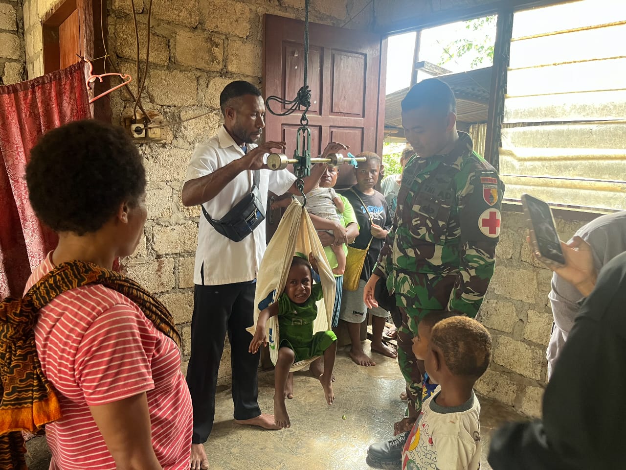 Papua – Dalam rangka meningkatkan kesehatan balita di wilayah perbatasan, Satgas Yonif 512/QY menggelar kegiatan Posyandu bersama tenaga kesehatan Puskesmas setempat di Kampung Yuruf, Distrik Yaffi. Senin, (16/12/2024).