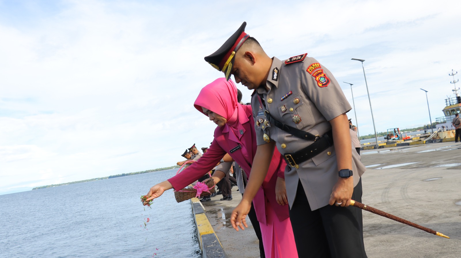 Kaimana – Memperingati Hari Bhayangkara ke-79, Polres Kaimana menggelar kegiatan ziarah ke Taman Makam Pahlawan (TMP) Gunung Genova dan tabur bunga di pelabuhan laut Kaimana pada Kamis (26/6/2025).