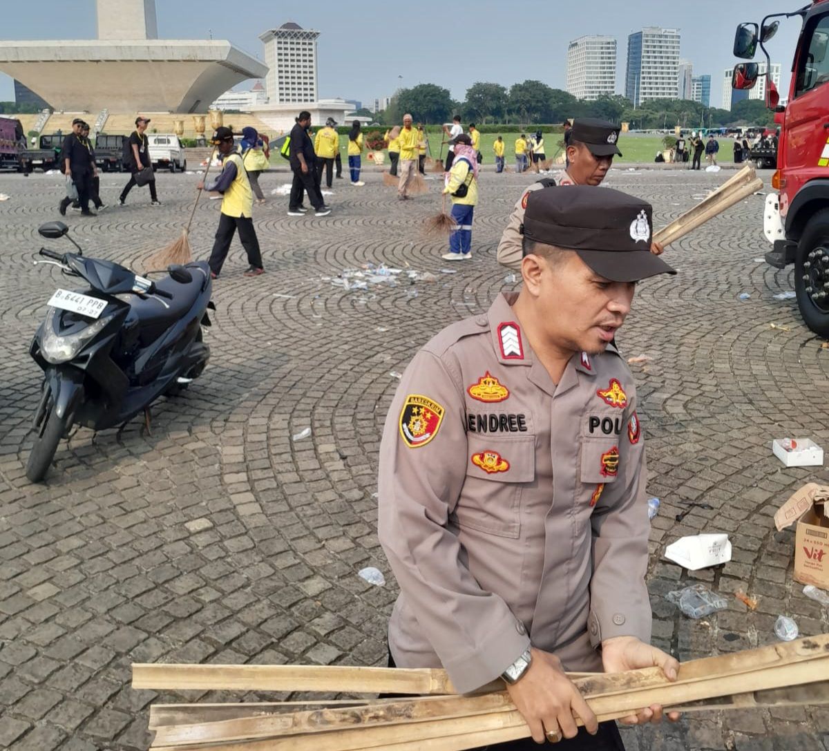 Kapolres Metro Jakarta Pusat Kombes Susatyo Purnomo Condro mengatakan personel yang terlibat dalam aksi bersih-bersih berasal dari Polda Metro Jaya hingga Polsek Tanah Abang yang bertugas melakukan pengamanan May Day Fiesta.