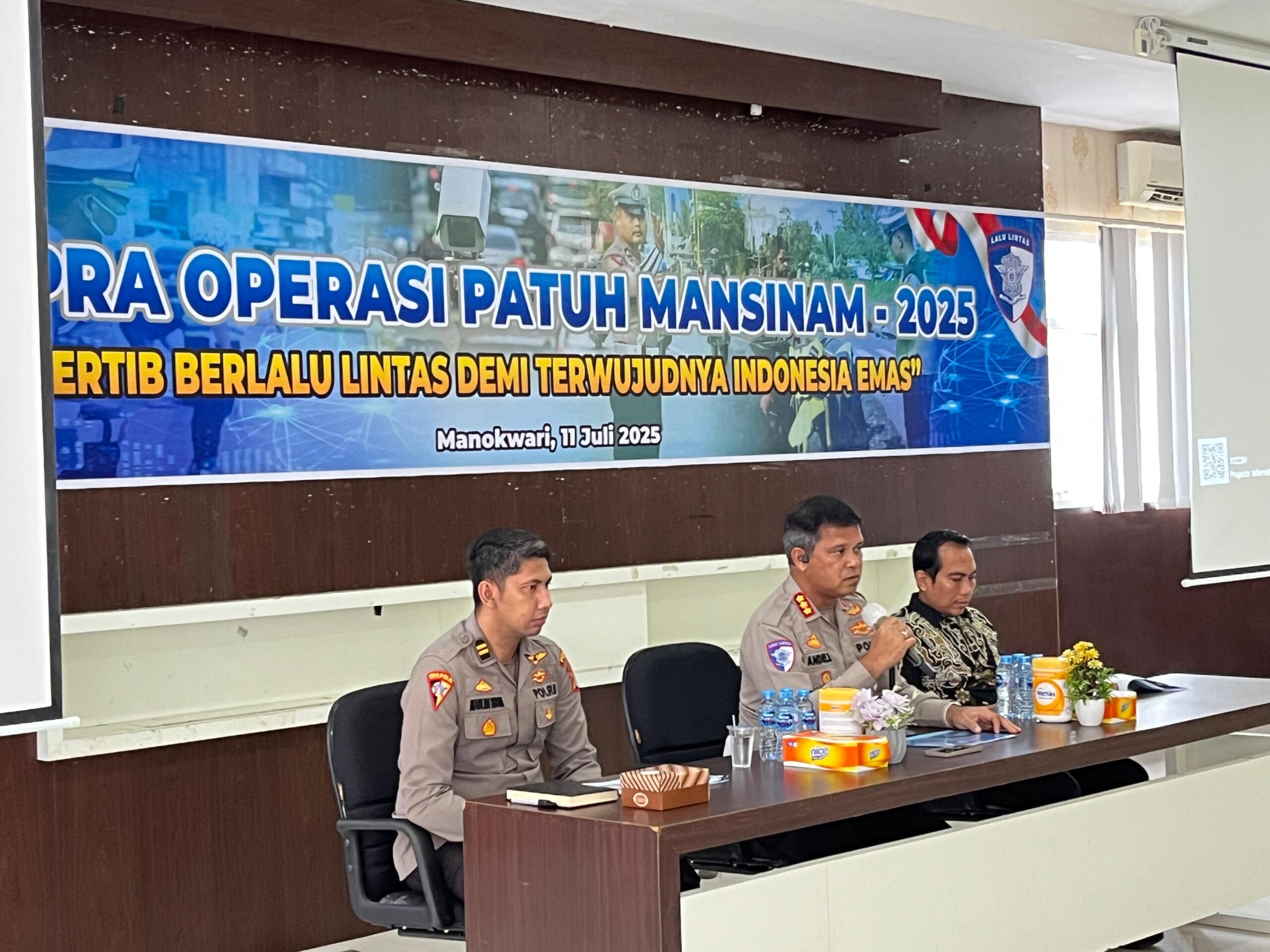 Manokwari , Papua Barat – Direktorat Lalu Lintas Kepolisian Daerah Papua Barat melaksanakan kegiatan Latihan Pra Operasi (Latpraops) Patuh Mansinam Tahun 2025 yang berlangsung di Ruang Pyanemo Polda Papua Barat mulai Pukul 10.00 WIT hingga selesai Jumat, (11/7/25)
