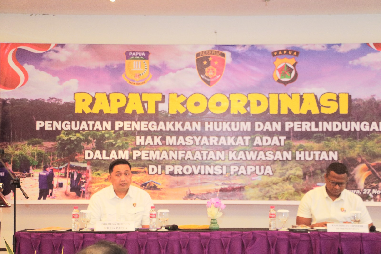 Dirreskrimsus Polda Papua, Kombes Pol. I Gusti Gde Era Adhinata, S.I.K., dalam sambutannya menegaskan komitmen Polri untuk melaksanakan penegakan hukum secara profesional dan berkeadilan, khususnya di bidang pertambangan dan kehutanan.
