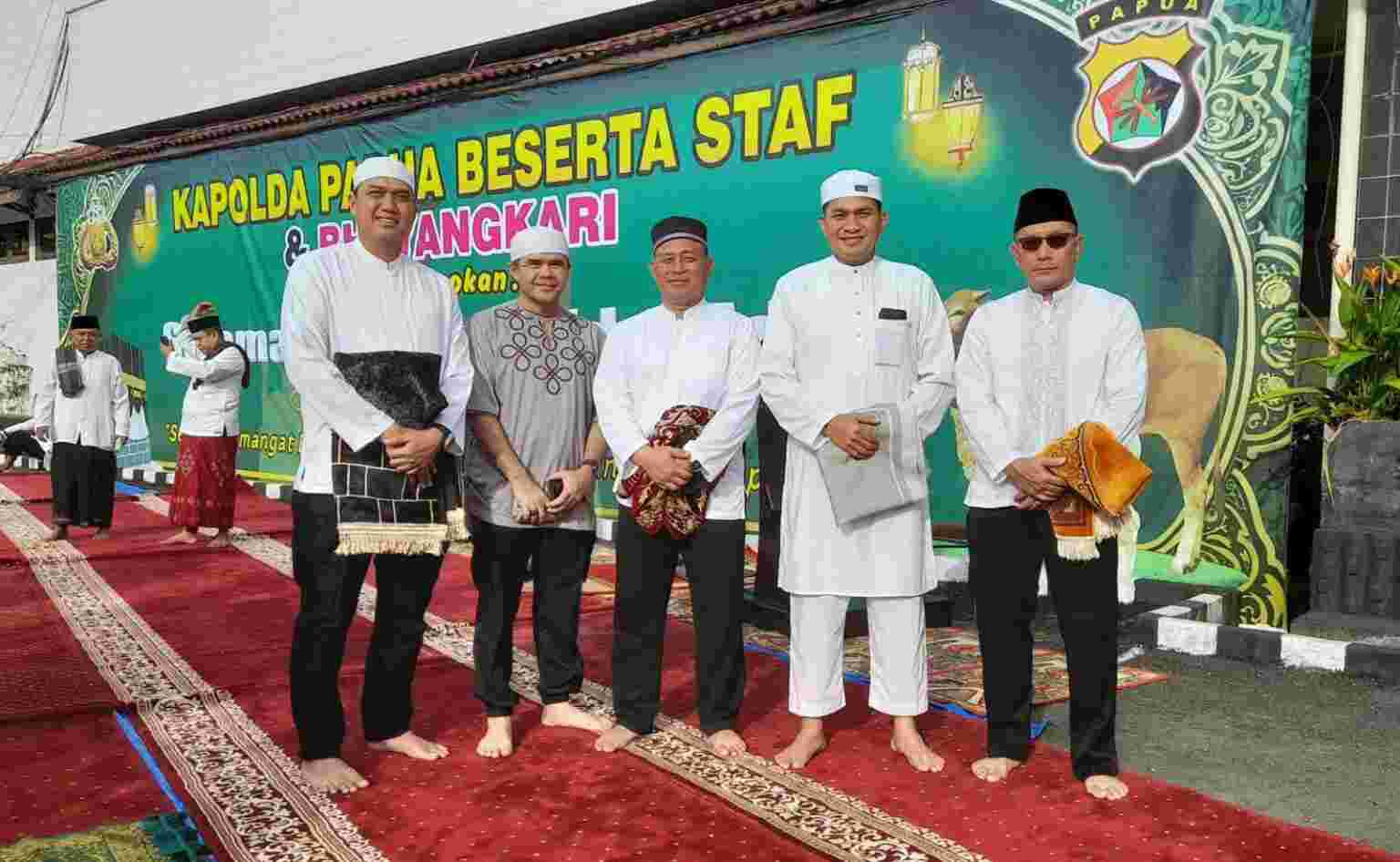 Kapolda Papua melalui Karo SDM Polda Papua, Kombes Pol Sugandi, S.I.K., M.Hum yang turut hadir dan melaksanakan sholat Idul Adha, menyampaikan apresiasi atas partisipasi seluruh pihak dalam kegiatan ini.