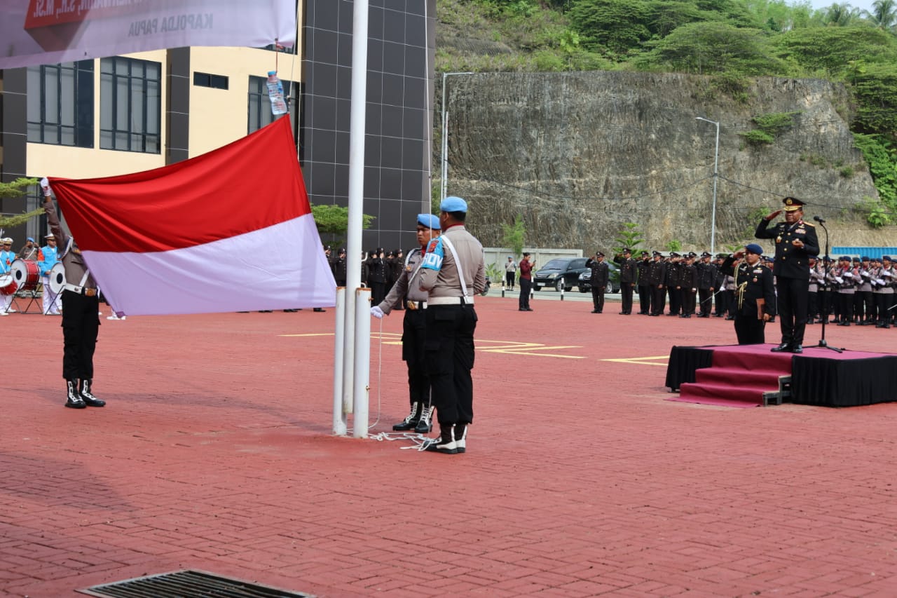 Kapolda Papua Irjen Pol. Patrige R. Renwarin, S.H., M.Si. bertindak sebagai Inspektur Upacara, dan turut dihadiri oleh Irwasda Polda Papua Kombes Pol. Jermias Rontini, S.I.K., M.Si., para Pejabat Utama Polda Papua, serta seluruh personel Pamen, Pama, Bintara, dan ASN Polda Papua.