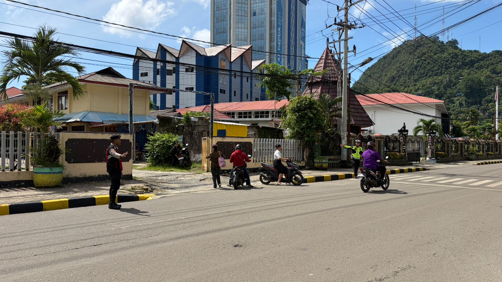 Usai apel, kegiatan dilanjutkan dengan pengamanan di depan tempat ibadah guna memastikan situasi keamanan dan ketertiban masyarakat tetap kondusif.