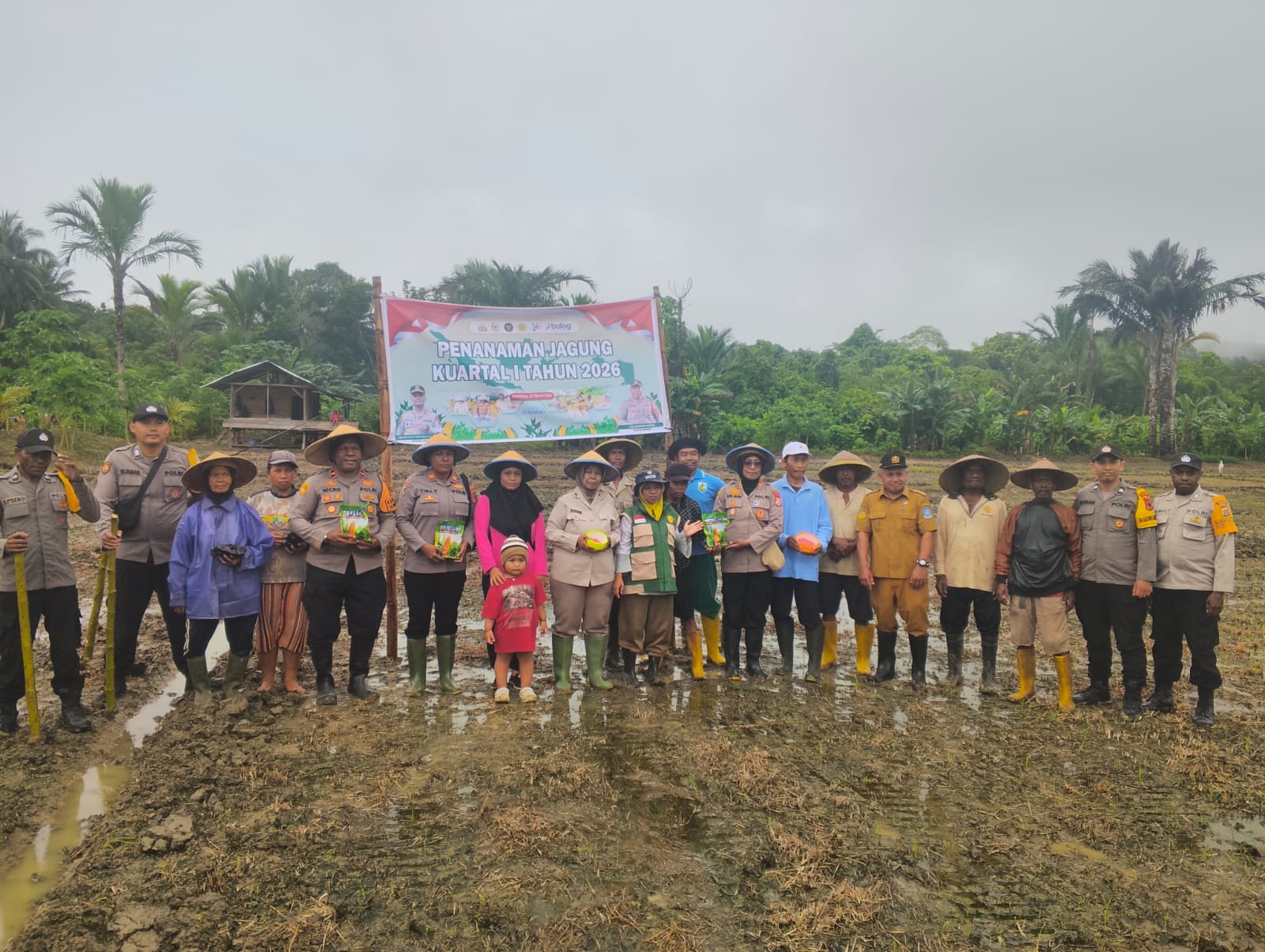 Papua – Dalam upaya mendukung program ketahanan pangan nasional, Polres Jayapura bersama Polsek Nimboran dan Kelompok Karya Tani melaksanakan kegiatan penanaman jagung Kuartal I Tahun 2026 di Kampung Karya Bumi, Distrik Namblong, Kabupaten Jayapura, Senin (09/03/2026).