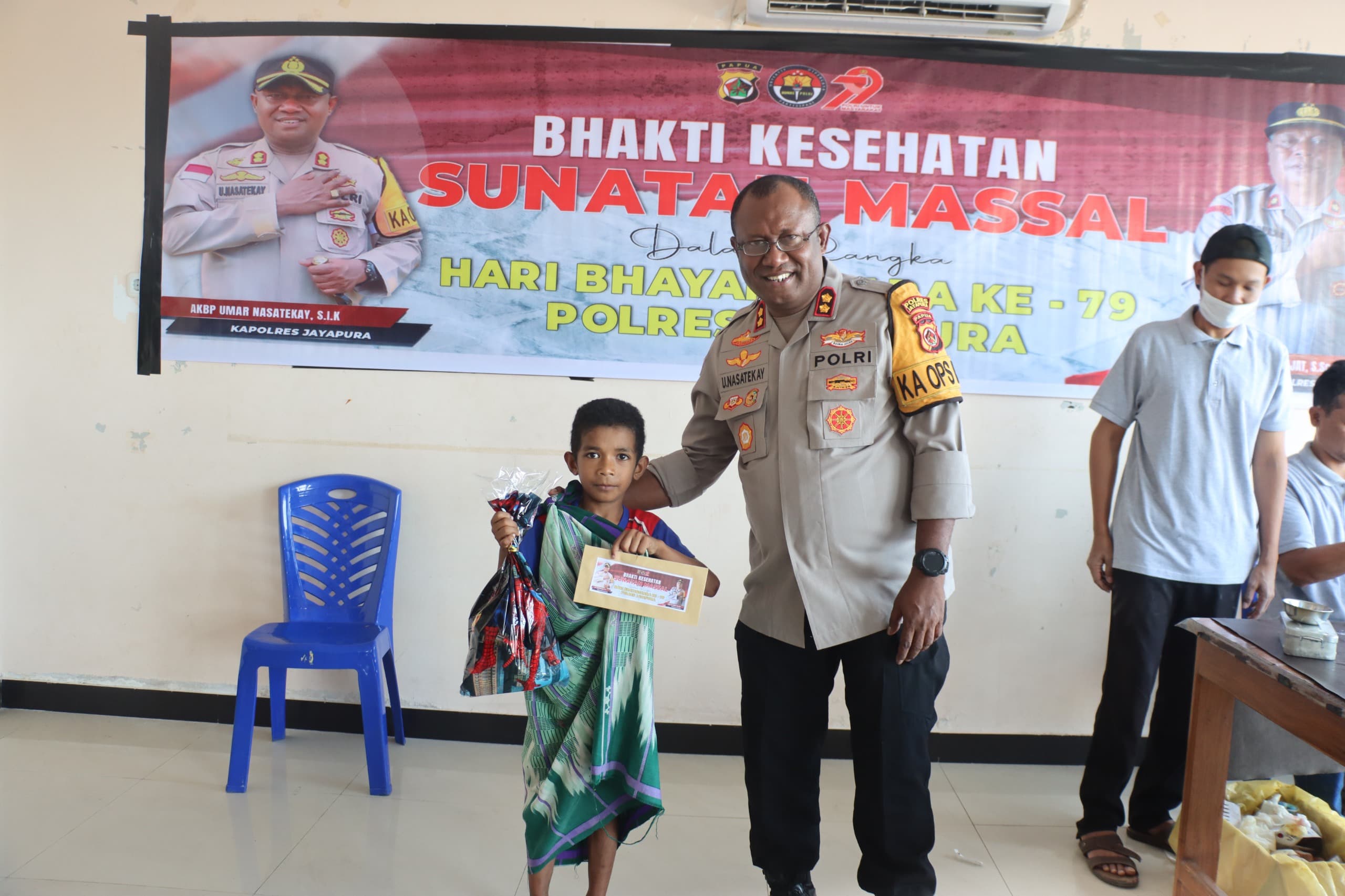 Papua – Dalam rangka memperingati Hari Bhayangkara ke-79, Polres Jayapura menggelar kegiatan Bhakti Kesehatan berupa sunatan massal gratis yang diselenggarakan di Gedung Aula Wisma Sanika Satyawada Polres Jayapura pada Selasa pagi (24/06/2025). Kegiatan ini menjadi bentuk nyata kepedulian sosial serta pendekatan humanis Polri terhadap masyarakat, khususnya keluarga kurang mampu.