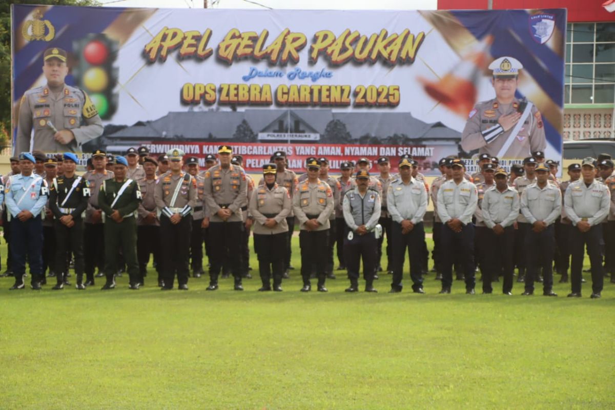 Papua – Polres Merauke menggelar Apel Gelar Pasukan Operasi Zebra Cartenz 2025 di Lapangan Apel Mapolres Merauke, Senin (17/11/2025).