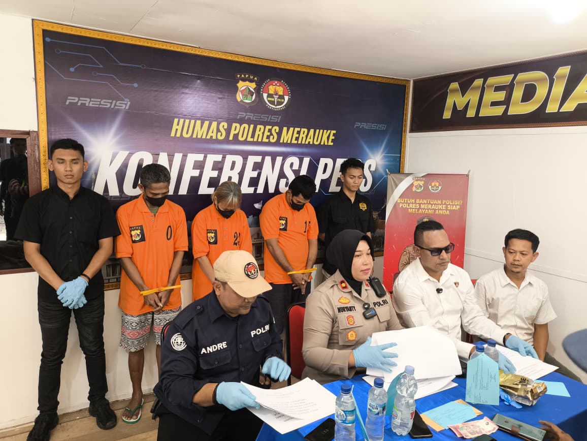 Pengungkapan tersebut disampaikan dalam konferensi pers yang digelar pada Kamis (6/11/2025) di Ruang Media Corner Humas Polres Merauke. Kegiatan dipimpin oleh Wakapolres Merauke Kompol Nuryanty, S.H., M.H., didampingi Kasat Resnarkoba Ipda Dr. (C) Daniel Zeth Rumpaidus, S.H., dan Ps. Kasi Humas Ipda Andre M.S.B., S.Kom.