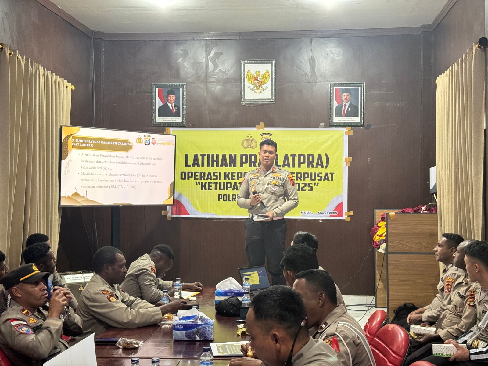 Papua – Bertempat di Ruang Data Aula Vicon Mako Polres Puncak Jaya, Kepolisian Resor Puncak Jaya menggelar kegiatan Latihan Pra Operasi Ketupat Noken – 2025 yang dipimpin langsung oleh Kapolres Puncak Jaya AKBP Kuswara, S.H., S.I.K., M.H, Senin (24 Maret 2025).
