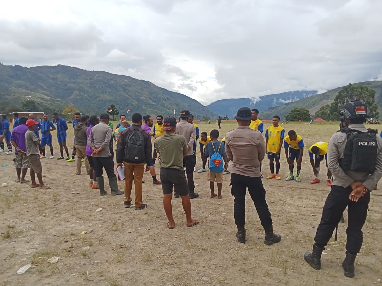 Papua – Polres Tolikara melalui Satuan Binmas menghadiri kegiatan penutupan pertandingan sepak bola yang berlangsung di Lapangan Merah Putih, Distrik Karubaga. Minggu (05/10/2025).