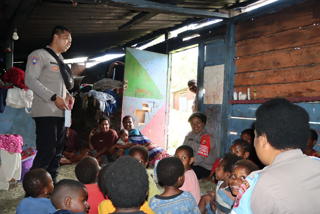 Papua – Dalam rangka Operasi Rasakan Cartenz 2025, Subsatgas SI-IPAR (Polisi Perempuan Sahabat Anak dan Perempuan) melaksanakan kegiatan pelayanan sosial dan edukasi kepada masyarakat di wilayah pedalaman Papua. Kegiatan ini berlangsung di sebuah pemukiman sederhana, dan mendapat sambutan hangat dari masyarakat setempat, khususnya anak-anak dan kaum ibu. Minggu, (04/05) Pagi.