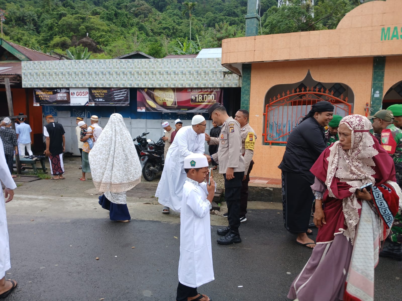 Papua – Polres Jayapura, Personil Polsek Demta Polres Jayapura menggelar pengamanan ibadah Sholat Ied di Masjid Nurul Iman, Senin 31 Maret 2025.