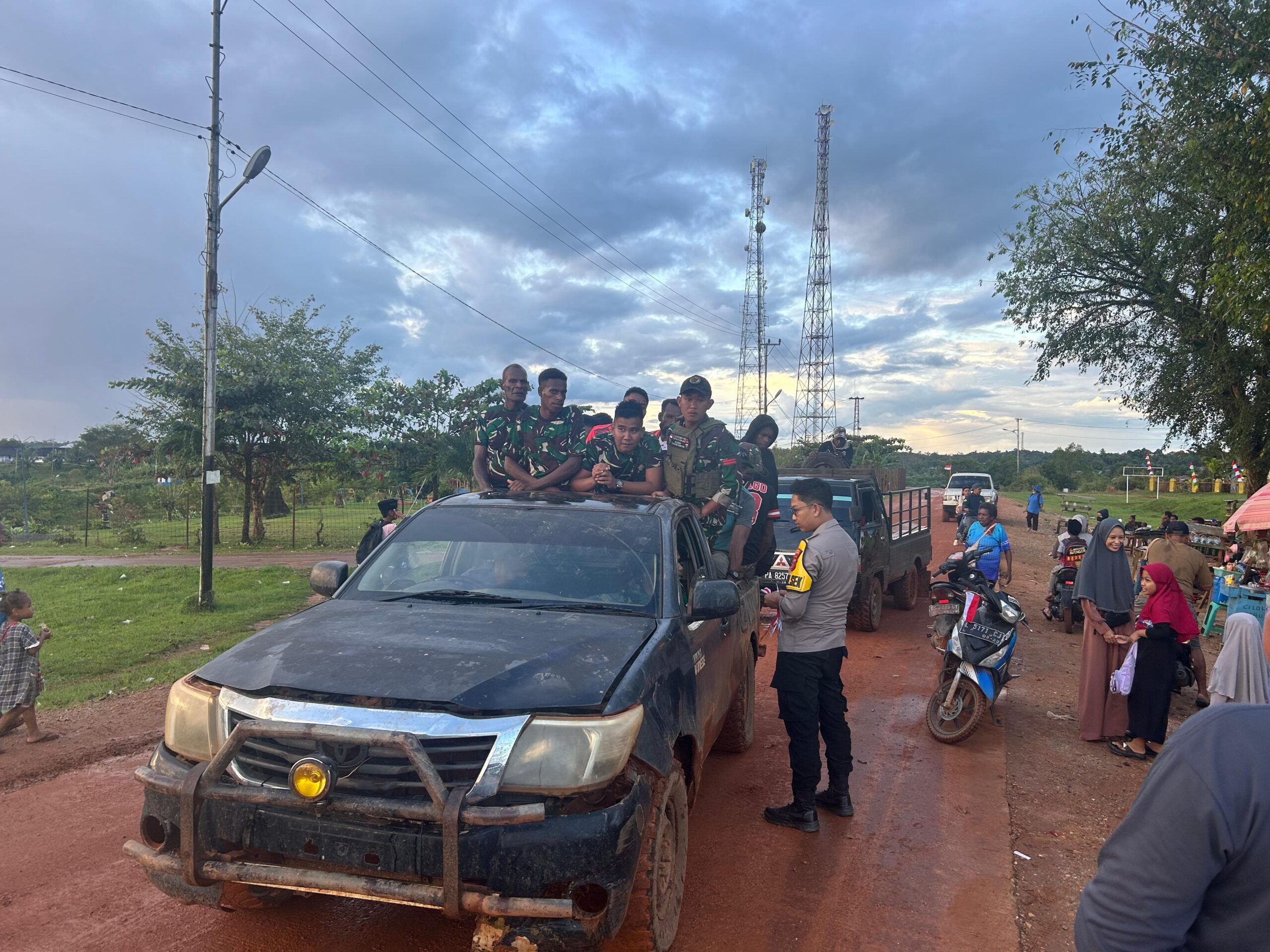 Kegiatan yang dipimpin langsung oleh Kapolsek Jair, IPDA Akbar, S.Tr.K., ini melibatkan seluruh personel Polsek Jair Polres Boven Digoel. Dengan penuh semangat, para personel membagikan 100 lembar Bendera Merah Putih secara gratis kepada pengguna jalan, khususnya pengendara sepeda motor dan mobil yang melintas di Jalan Asiki.
