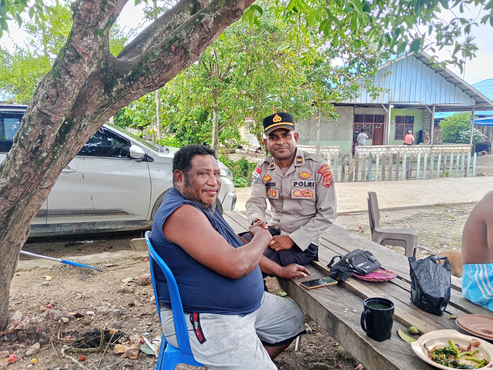 Papua – Usai pelaksanaan Pemungutan Suara Ulang (PSU) Pemilu 2025 di Distrik Muara Tami, Kanit Binmas Polsek Muara Tami, IPDA Yanto Rumbruren, melaksanakan kegiatan sambang ke sejumlah tokoh masyarakat pada Sabtu (09/08/2025).