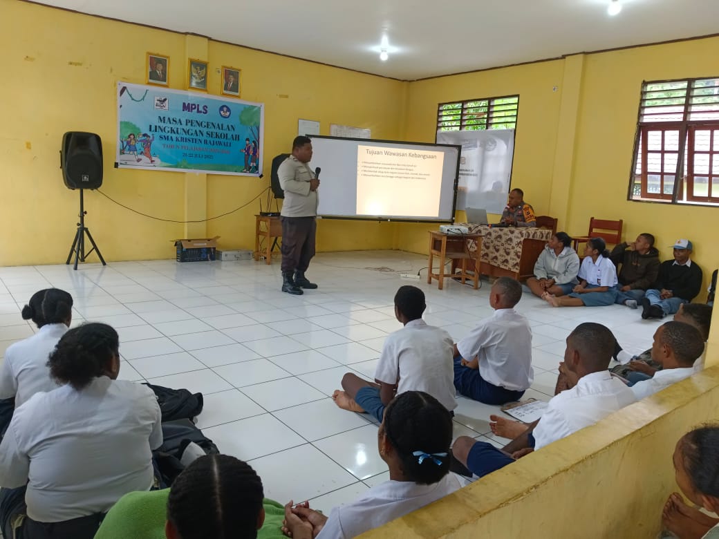 Materi pertama disampaikan oleh Ps. Kanit Binmas Polsek Sentani Timur, Aiptu Paulus Y. Makuba, yang menekankan pentingnya wawasan kebangsaan dalam menjaga persatuan dan kesatuan di tengah keberagaman. Ia juga mengajak para pelajar untuk menjadi generasi muda yang bertanggung jawab, cinta damai, serta menjunjung tinggi nilai-nilai Pancasila.