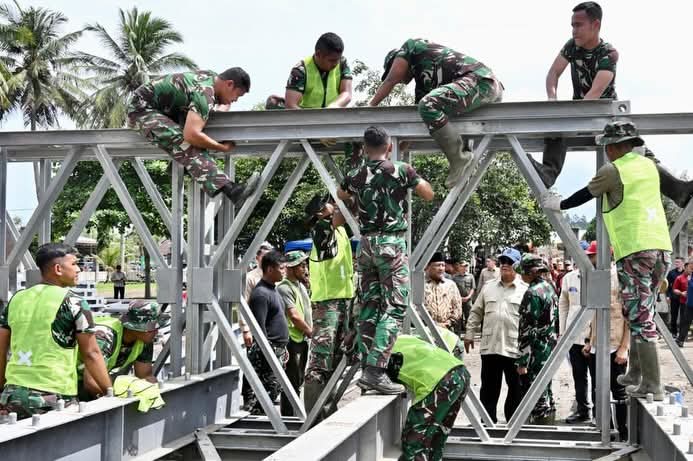 Aceh – Presiden Prabowo menegaskan komitmen pemerintah untuk memastikan kebutuhan pangan masyarakat di wilayah terdampak bencana di Aceh tetap terpenuhi. Hal tersebut disampaikan Presiden usai meninjau pengerjaan Jembatan Bailey Teupin Mane, Kabupaten Bireuen, Aceh, Minggu, (07/12/2025).