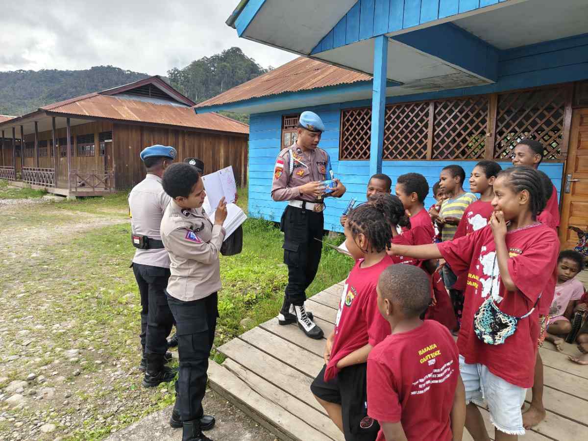 Papua – Program Si-IPAR (Polisi Pi Ajar), bagian dari Operasi Rasaka Cartenz 2025, Hadir Mengajar Membaca dan Menulis Kepada Anak-anak Generasi Penerus Bangsa, kegiatan dilaksanakan di Balai Kampung Kabiding Distrik Oksibil, Kabupaten Pegunungan Bintang, Oksibil. Sabtu (26/07) Sore.