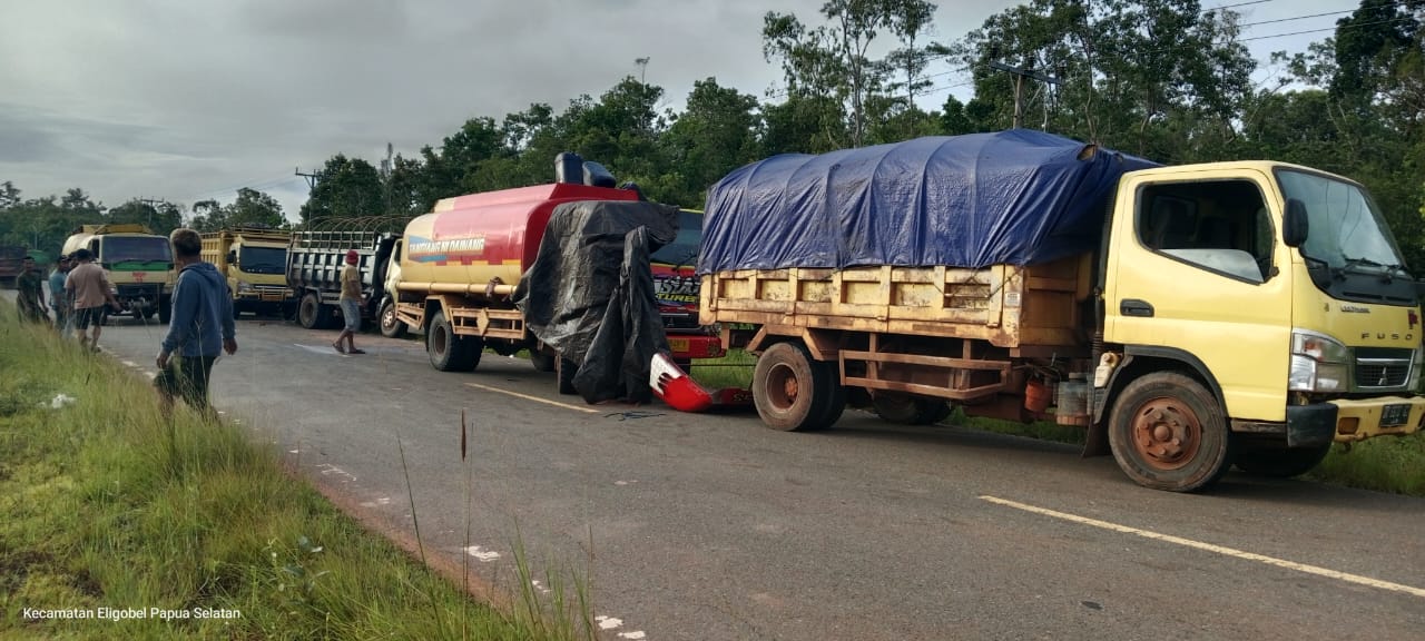 Kejadian tersebut bermula dari Pengemudi mobil Tangki CPO An. AS(29) mengendarai kendaraan dalam kondisi mengantuk yang melaju dari arah Kota Merauke, menuju Distrik Muting, sekitar di KM. 188, sekitar pukul 02.40 WIT. AS yang saat itu mengantuk kemudian menabrak sebuah mobil Dump Truk yang tengah menepi di bahu jalan, yang didalamnya terdapat kedua korban an. AD(36) dan KA(44). Keduanya mengalami Luka-luka yang dilarikan menuju RS Merauke.