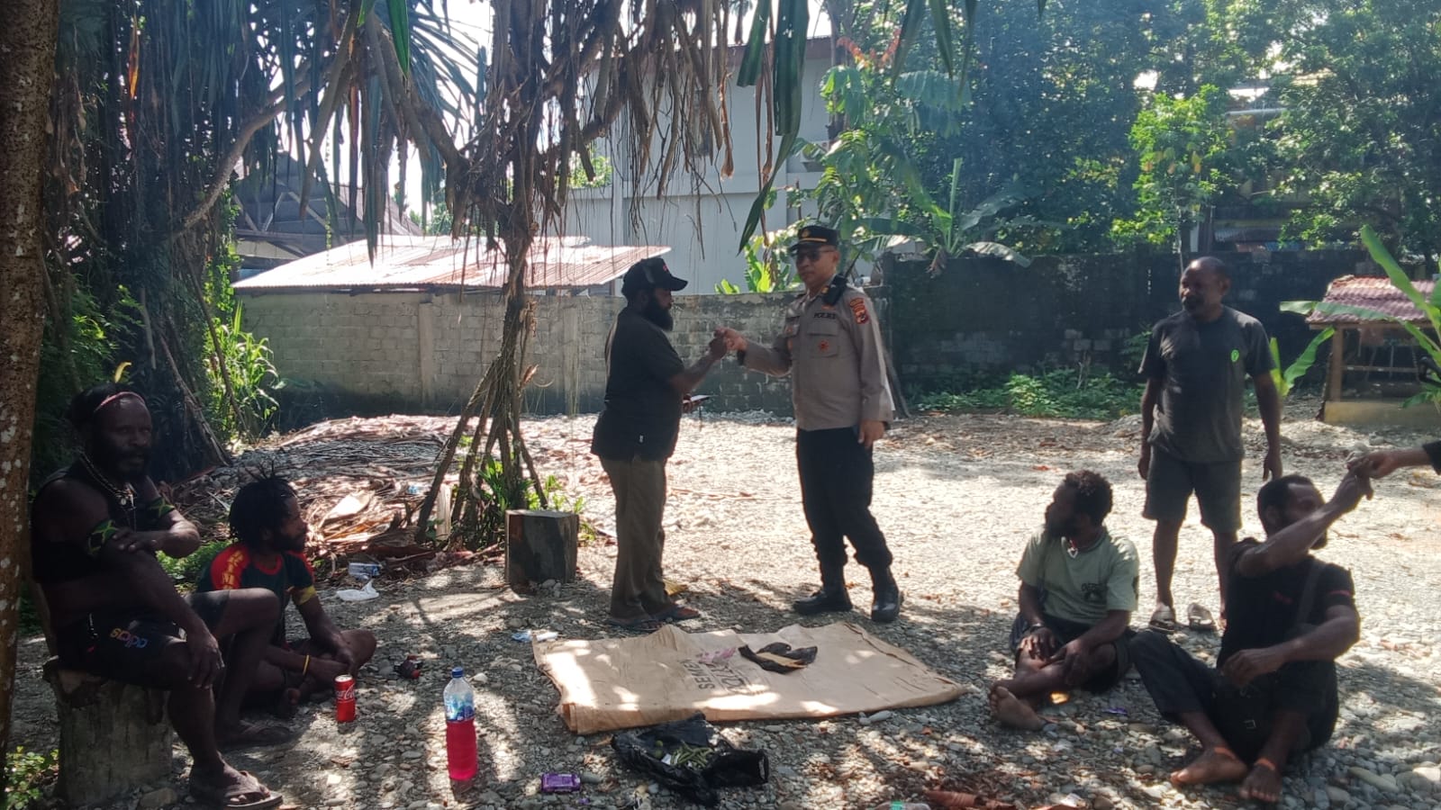 Papua – Kasat Binmas Polres Mimika, AKP Dorotheus Jemalut bersama personel Brimob Yon B Mimika melaksanakan patroli dialogis sekaligus sambangi warga binaan bertemlat di kompleks Selebes Kampung Hangaitji Distrik Mimika Baru, Kabupaten Mimika, Senin (24/2/2025).