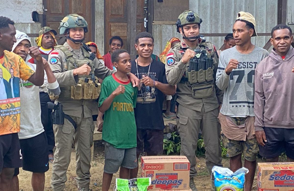 Papua – Dalam rangka menyambut Hari Ulang Tahun (HUT) ke-79 Korps Brimob Polri, Sat Brimob Sulawesi Tengah yang tergabung dalam Satuan Tugas (Satgas) Tindak Operasi Damai Cartenz (ODC) 2024 menunjukkan kepedulian terhadap anak – anak Sekolah yang ada di Asrama Alemsom di Kampung Ngutop, Distrik Oksibil, Kab. Pegunungan Bintang dengan memberikan sembako, Senin 11 November 2024.