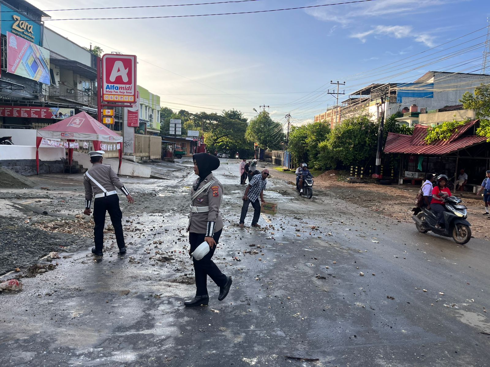Kegiatan ini dipimpin langsung oleh Kasat Lantas Polresta Jayapura Kota, AKP Muh. Akbar, S.Sos., bersama personel Sat Lantas yang bergerak cepat ke lokasi-lokasi rawan kemacetan untuk melakukan penanganan awal terhadap pohon tumbang dan genangan material banjir di ruas-ruas jalan.