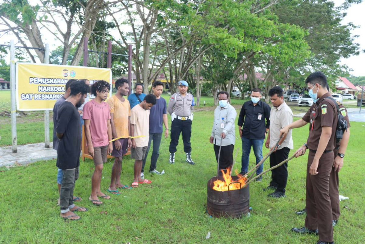 Kasat Narkoba Polres Keerom menjelaskan bahwa barang bukti tersebut berasal dari beberapa tersangka dengan laporan polisi yang berbeda, yaitu TT, NAK, RM, NT, dan MH. Pemusnahan dilakukan dengan cara dibakar untuk mencegah penyalahgunaan lebih lanjut.