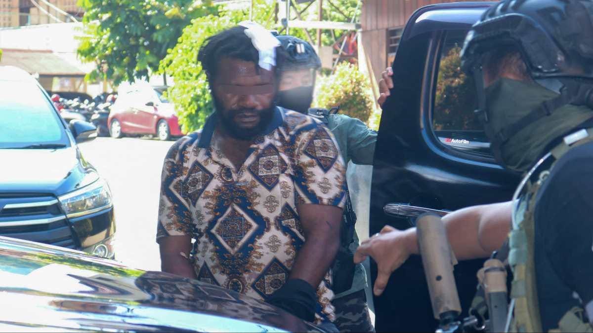 Papua – Pimpinan Kelompok Kriminal Bersenjata (KKB) Paniai, Jemmy Magai Yogi, yang juga menjabat sebagai Kepala Staf Angkatan Darat West Papua Army (WPA) Divisi II Pemka IV Paniai, tiba di Markas Polda Papua, Jayapura, pada Jumat, 18 Oktober 2024.